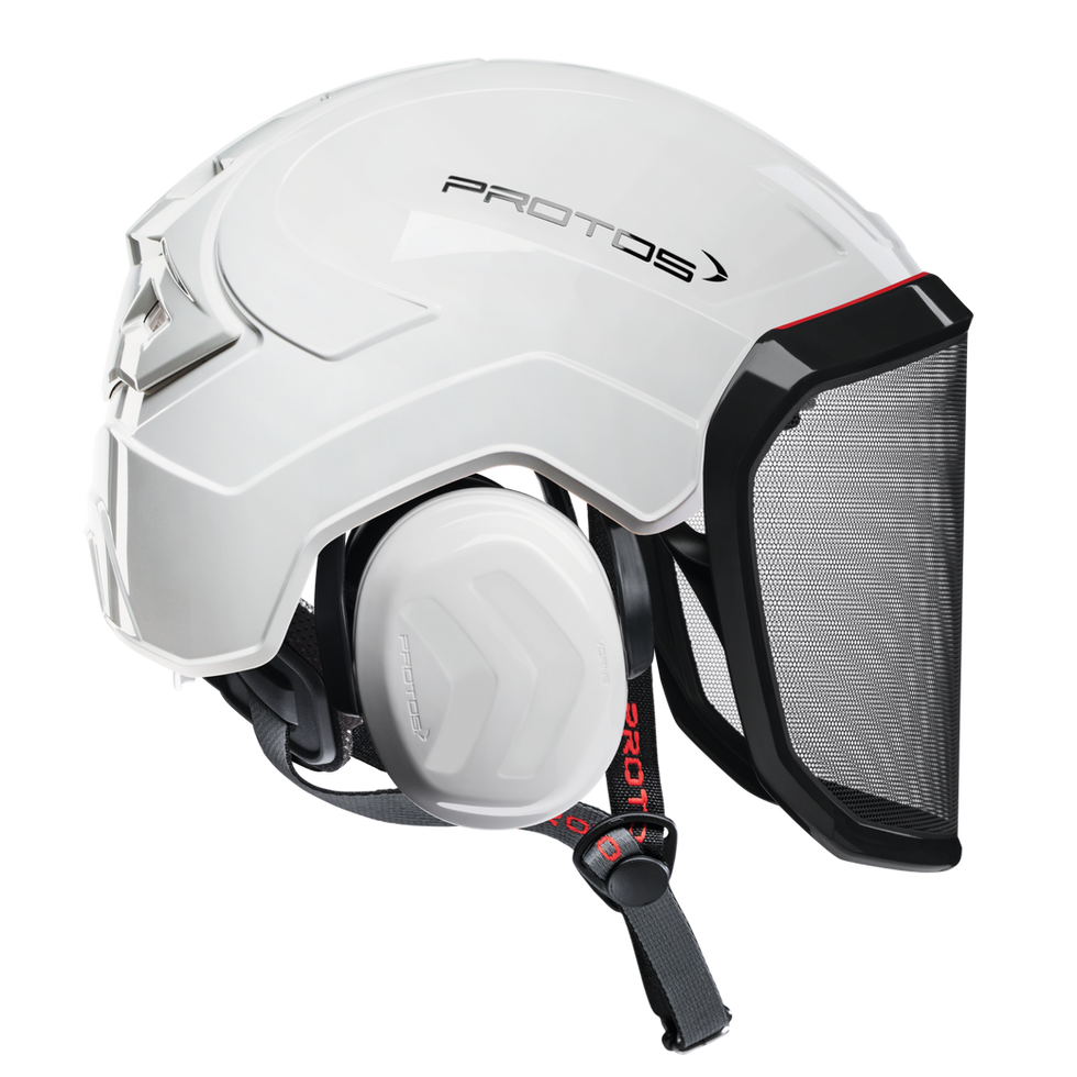El casco Protos® Integral Arborist es el elemento de protección ideal para trabajos de arborismo en altura, donde la protección facial es indispensable. La protección facial y auditiva están integradas en la carcasa de protección de la cabeza, evitando así quedar enganchadas en ramas o salientes. El diseño especial del casco Protos® Integral Arborist permite la circulación interna de aire desde los lados hacia los orificios de ventilación. Esto permite la refrigeración de la cabeza incluso durante las labores más extenuantes. Tras su uso, las inserciones KlimaAIR® Set pueden cambiarse o lavarse a 30º C para mayor higiene. La guía del barbiquejo está diseñada para que no se deslice bajo la protección auditiva, lo que podría afectar negativamente la reducción del ruido o el confort.